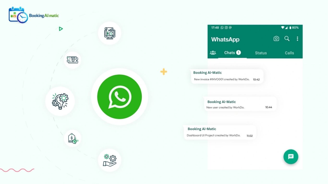 Booking AI-Matic seamlessly integrates the WhatsApp API. This integration allows users to send WhatsApp messages triggered by specific events within the application. In the settings section, users have the ability to customize and manage event notifications by toggling them on or off as per their preferences. This feature enhances user engagement and facilitates efficient communication through WhatsApp messaging within the Booking AI-Matic platform.